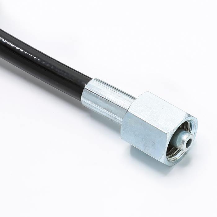 شیلنگ رابط جک به رابط شاسی اسکانیا در واقع این شیلنگ سه راهی متصل به پایه ی جک را به سه راهی داخل شاسی متصل می کند. طول این شیلنگ 2 متر بوده و دارای دو سر مستقیم یک سر با سایز 6 و یکسر با سایز 8 می باشد.